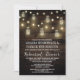 Rustic Mason Burk Rehearsal Middagsbjudanden - har en tryckt träbakgrund med strängen ljus och lammason burk.