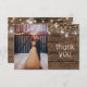 Det här vackra och elegant tacket som du har med ditt kort har ett eget foto och rustik Mason burk och sträng ljus på en mörk träbakgrund. Enkel att anpassa med ditt eget foto, namn, och tack för dina känslor. Kontakta mig om du behöver ytterligare designanpassningar för ditt vackra bröllop. Design © av TK Goforth. Om du vill samordna saker kan du besöka min samling Rustic Mason Burk och String Ljus Bröllop och min Zazzle-butik: