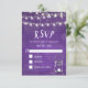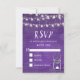 Ultra Violet Rustic bröllops OSA-kort har en fotobakgrund för träkord, en snurra av ljus och Mason burk med ett ljus. Blanda och matcha de här bröllopen OSA med vår samling av matchande bröllop-kontorsmaterial och favoriter.