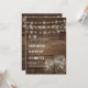 Vi presenterar gästerna för er bröllop, med vår unika bröllopsinbjudan med en bakgrund och en illustration av burk. Utformningen är klar med strängar av ljus som ger ett varmt och intimt tryck. Inbjudan innehåller text på båda sidor och skapar perfekt för att dela med sig av alla viktiga detaljer på din speciella dag. Vi har också inkluderat alternativet att lägga till en QR-kod längst bak i inbjudan, ge dina gäster enkel tillgång till ytterligare information eller digital OSA. Vi erbjuder både budgetalternativ och förstklassiga pappra alternativ, och du kan till och med beställa en digital nedladdning av den här designen för DIY-hemutskrift eller skicka som en digital inbjudan via e-post eller text. Med den här vackra inbjudningsdesignen tillför du bröllop en liten charm. Den här roliga träinbjudan är en perfekt för ett bröllop med ett skog, utomhus eller ett lada tema. Mottot burk illustration och strykningar av ljus ger inbjudan en charmerande beröring och passar alla säsonger. Vare sig du planerar ett fall, vintern eller hösten bröllop, kommer den här inbjudan att ange tonen för din speciella dag och vara en underbar matchning för ett orustiskt, land eller vintage temat bröllop.