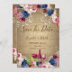 Rustic mason burk, snöre, burgundy ro, vin, flaska och ljus på trä struktur. Spara det datum som kan anpassas med ditt namn på ett bra sätt. Klicka på knappen "anpassa" om du vill ändra teckensnittet stil, färg och storlekt.