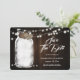 Rustic bröllop spara datum-kort med mynningen burk och burlap-hjärtan mot en lingbakgrund som är försedd med ljus. Anpassa enkelt den romantiska onlinen i bröllop spara datum. Matchande objekt som är tillgängliga för att komplettera det här logiska landsbyggsbröllopet sparar datumet.