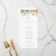 This rustic meadow botanical dinner menu card is perfect for a garden wedding. The design features seamless hand-painted yellow, navy, blue, yellow, pink, and blush wildflowers with botanical leaves.