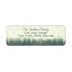 Dessa små returetiketter har en strålande design med en vattenfärgad målning av foggiga berg täckta med grönt gräs träd. Perfekt för en ren jul eller helgdag.