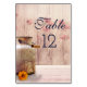 Bröllop bord, nummerkort med ett orustiskt land-tema. En gammal rostig mjölk kan med en söt orange blomma vid sidan. Vetet och rödvallor i bakgrunden mot en svag träpanel.