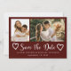 Modern handwritten script hearts rustic burgundy save the date wedding with 2 engagement photos. ++++++++++++++ Suitable for summer autumn fall or winter weddings.