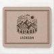 Rustic Modern Mountain Custom mousepad with hand drawn style mountain scene with trees and sun. Add your own custom name! Makes a great gift for coworkers!