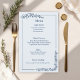 bröllop-festen med gäster i stil med hjälp av det här rustiska monokroma bröllop-menykortet. Med blommigtens accents och elegantens manus typsnitt kompletterar den här designen perfekt lada, land eller trädgårdsbröllop. I dammblått, sage grönt eller varmt taupe skapar paletten med en färg ett tidlöst rustiskt utseende. Anpassa med dina kurser- eller buffetval för att slutföra ditt bröllop- och mottagningsprogram.