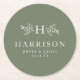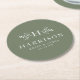 Rustic monogram sage grönt, enkel klassisk bröllop underlägg papper rund
