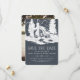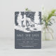 Planerar man ett bröllop i bergen? Meddela din dejt med vår rustika chic spara datumkorten i en färg-palett med skarp vit färg och en tilltalande skugga av mörk kol grått som har en aning av elegantens marin blått. Utformningen illustrerar en rustik land-hytt i skogen, omgiven av lång träd, med "spara datumet" och dina bröllop-detaljer under. Textmallar för anpassningsbar ger utrymme för webbplatsen namn, bröllop, plats och bröllop. Lägg till ett foto på förlovningen längst bak på kortet om du vill.