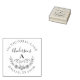 Skapa din egen vackra returadress gummi frimärke med din personlig till början, namn och adress. Konstruktionen har vintage-stil, elegant runt typografi med en handdragen bild av ett bergslandskap i ett rustiskt bergsområde som omges av en blomkrans och löv inuti. I mitten finns personligens initial och namn i ett elegant-skript. Byt ut texten mot din egen information så att den blir verkligt unik. Det kommer att glädja er!