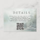 A serene nature-inspired wedding Details enclosure card with contemporary styling and a rustic look with a peaceful mountain lake misty forest scene in soft watercolors. A QR Code template to personalize with your wedding website connects your invited guests to all the details and allows them to RSVP online. Personalize with your desired text and wedding website URL.