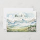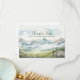 Se till att bergens lugn når ert hjärtliga uppskattningsbudskap. Det här vattenfärgstacket som du har med dig är ett serenallandskap med misttoppar, gräs träd och ett mjukt blå himmel, perfekt för bröllop utomhus, element, minnesmärken eller naturinspirerade händelser. På framsidan finns ett snyggt "Tack"-meddelande, med en anpassning på baksidan som tillval. Ett tänkbart sätt att hedra dina gäster med elegans.