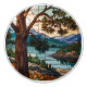 Rustic mountain range landscape stain glass knopp