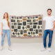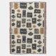 Earthy geometric pattern blanket inspired by tribal mudcloth textiles, featuring hand-painted rectangles, diamonds, and triangles in charcoal black and terracotta on a textured beige background. A warm boho design ideal for rustic décor lovers, artisan style fans, and anyone drawn to earthy geometric aesthetics.