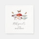 Rustik födelsedagsfest papper napkin med vattenfärgad illustration av svampar och myter.