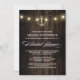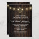 Rustic Nautical Anchor Inbjudningskort för möhippa - har en bakgrund av rustik lada eller trä med sträng ljus och elegant guld ankare. Baksidan har samma bakgrund med sträng ljus.