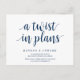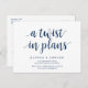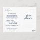 Det här är det minsta moderna, rena designtemat, med ett marint blått teckensnitt, en Bröllopsfest-inbjudan - ett vykort som är ombokat (uppskjutet/uppskjutet) (en nyans i ritningar). Det är perfekten och eleganten som gör det möjligt att lägga om meddelandet till vänner och familj.