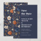 Rustic Navy Blue Blommigt Bröllop spara datum Datumet