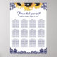 Rustic Navy Blue Lace Sunflower Seating Chart 12 Poster