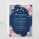 Rustic Navy Blue Rosa Blommigt Quinceañera Inbjudningar