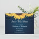 Minimalistiskt marinblått kort och solroskort bröllop spara datum. Matchande objekt är tillgängliga.