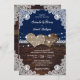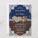 De romantiska julbröllopsinbjudningarna som inspirerats av sprickhjärtan på ett rustiskt trä, skrapa och snöre-bakgrund är perfekt för att bjuda in dina gäster till din marinblå bröllopsfest land/bakgård/ladugård.