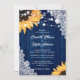 Rustic Navy Blue Wood Snöre Solros Bröllop Inbjudningar