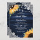 Rustic Navy Blue Wood Snöre Solros Bröllop Inbjudningar