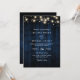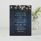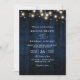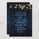 Rustic Navy Blue Wood String Light QR Code Wedding Inbjudningar