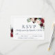 Låt dina gäster OSA till bröllop med våra sjö-, rosa- och marsalavarokort. Ordalydelsen är helt anpassade - om du behöver ändra teckensnittet, teckensnittet färg, storleka eller placeringen av textrutorna klickar du bara på knappen "Klicka för att anpassa ytterligare" för att ändra saken. Se till att kontrollera vårt stora urval av samordnande element genom att bläddra i uppsamlingen Rustic Navy och Marsala Blommigt Bröllop!