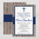 Rustic Navy & Wood Boy First Heliga Communion Inbjudningar