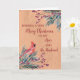 God jul för brorsan och hennes make-kort med vattenfärgsblad, en kardinal och vintage papper mönster och tankfull vers.