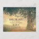 Cute Rustic sparar datumet på vykortet med gamla träd och hängsträngen ljus.