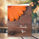 Anpassa den charmerande Daisyn Rustic Orange och Barn Wood Land Tackkort Card med ditt eget tacksamhetsbudskap efter din avslappnad och än så länge klassande lantbruk, ranch eller western födelsedagsfest, möhippa och mottagning i party eller giftermål. Den här avslappnaden, som ändå är klassad anpassningsbar tackkort, har ett fyrfärgat foto av en orange daisy blomma och brunt barrträ med ett rostfritt huvud från nagel.