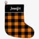 Rustic Orange och Black Buffalo Check Monogram Stor Julstrumpa