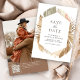 Akta dina gäster med den här eleganten och spara datumet med vackra rustiska handflatan-löv och pampasgräs med modern typografi. Lägg bara till din händelseinformation i den här mallen för enkel använda för att göra det till en sorts Spara datumkortet.