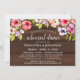 Denna vackra inbjudan till repetitionsmiddag i bröllop har en rustik boho-chic med ett antal handmålade vilda blommor, violetta och pansier i skuggor av rött, rosa, lavender och plommon på mörkens bruna lingerbakgrund. Det finns tider och platser för både förnyelsen och middagen, så brudens sida kommer att få all information de behöver.