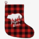 Rustic Pappa Bear Red & Black Buffalo Pached Stor Julstrumpa