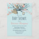 Mjukt pastellhaltig färg i korall, mynta, teal och brun adorn i ett botaniskt stil med bär och gräs med en glansig blå bakgrund. Trendigets typografi är anpassade eller behålla i stil i roligten, precis som det är för dig. Perfekt könsmässig inbjudan till antingen en dusch i pojke eller flicka.