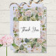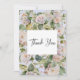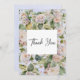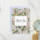 Den här enkla men elegant bröllop-tacksamma kortdesignen har en vacker vädrisk blommigt med dammig rosa, mjuka periwinkle blues och lila med grön. Texten visas på en bågvit bakgrund och designen kompletteras med den första början av bruden och trimningen. Denna utformning är en del av Rustic Pastel Hydrangea Blommigt Monogram bröllop-kortsserien. Skapat av Farmhouse Press.