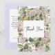 Den här enkla men elegant bröllop-tacksamma kortdesignen har en vacker vädrisk blommigt med dammig rosa, mjuka periwinkle blues och lila med grön. Texten visas på en bågvit bakgrund och designen kompletteras med den första början av bruden och trimningen. Denna utformning är en del av Rustic Pastel Hydrangea Blommigt Monogram bröllop-kortsserien. Skapat av Farmhouse Press.