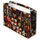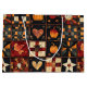Den här presentpåsen visar en folkart-stil quilt mönster som arrangeras i ett lapptäcke av fyrkantiga block. Kfilten har höstinspirerade motiv som pumpor, fåglar, apparaturhjärtan och en djärv vit stjärna, tillsammans med schackbräde och geometrisk piercad mönster för tillsatt struktur. Diskret vindruv och bladverk berikar den rustiska estetiken, medan den varma paletten med orange, svart, röd och grädde fångar det centrala i fallet. Perfekt för Thanksgiving, markskydd, primitiva hantverk och säsong-strukturer blandar denna mönster mysiga tradition med folkkonst charm.