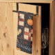 I kökshandduken visas en folkart-stil-mönster som arrangeras i ett lappverk av kvadratiska block. Kfilten har höstinspirerade motiv som pumpor, fåglar, apparaturhjärtan och en djärv vit stjärna, tillsammans med schackbräde och geometrisk piercad mönster för tillsatt struktur. Diskret vindruv och bladverk berikar den rustiska estetiken, medan den varma paletten med orange, svart, röd och grädde fångar det centrala i fallet. Perfekt för Thanksgiving, markskydd, primitiva hantverk och säsong-strukturer blandar denna mönster mysiga tradition med folkkonst charm.