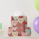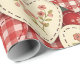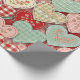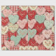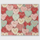 Warm rustic patchwork pattern wrapping paper featuring stitched heart motifs, plaid checks, and country-style fabric blocks in red, blue, green, and beige tones. A cozy farmhouse-inspired design ideal for country decor lovers, quilting fans, and rustic home enthusiasts. Perfect as a heartfelt gift for couples, moms, or cottage-style fans