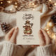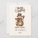 A cozy rustic Christmas design featuring a charming snowman dressed in a quilted patchwork coat, plaid scarf, and country hat. The warm earthy tones and vintage textures create a nostalgic farmhouse feel, perfect for winter gatherings, barn parties, or cozy family celebrations. A timeless and heartwarming invitation that captures the spirit of a country Christmas.