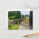 A rustic and inviting path in Mytholmroyd, Calderdale, West Yorkshire, framed by a wooden fence on the left and a traditional metal gate on the right, leading towards the hidden Hawksclough Bridge. The path is partially overgrown with green grass and wildflowers, indicating a less trodden, natural route. In the background, the dense, vibrant green foliage of trees and bushes characterizes the Pennine landscape. A glimpse of a traditional stone building and a white fence can be seen further along, hinting at the peaceful rural setting. The scene evokes a sense of discovery and the charm of the English countryside. This image can be edited and transferred to multiple products of your choosing.