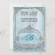 Monogram Rustic Funky och Distress Vintage affisch Stil Aqua Blue, Teal Distsed Wedding bjudande in