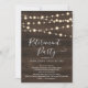 Inbjudan till Pension-partiet - String ljus på en rustik träbakgrund kompletterad med vacker kalligrafi. Formuleringen är inkorporerad för en överraskning av party, även om informationen lätt kan redigeras om firande inte är en överraskning.