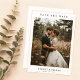 Det här Rustic Photo Bröllop spara datum har en romantisk skogsmiljö med paret omfamnat, som markeras av en mjuk, naturlig bakgrund. Designen användor klassisk typografi över bilden och ger en tidslängd och elegant.